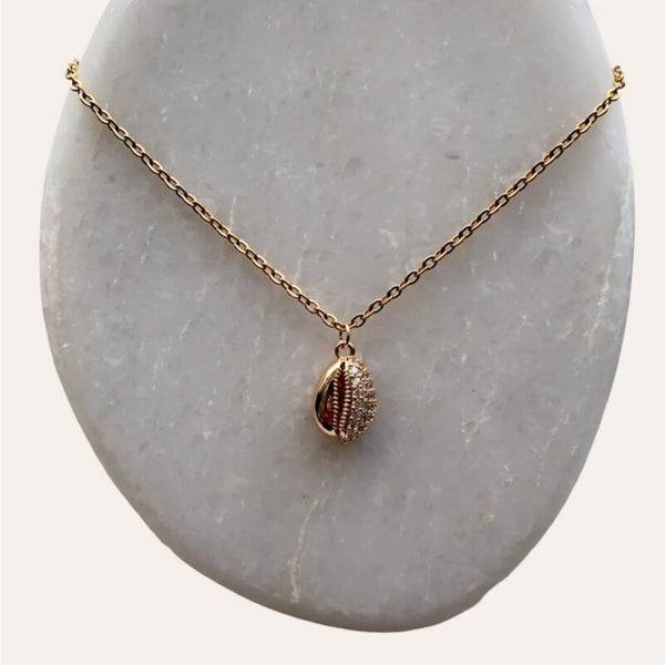 Stainless steel trendy ketting met zirconia schelp.De ketting is 40 + 6cm lang