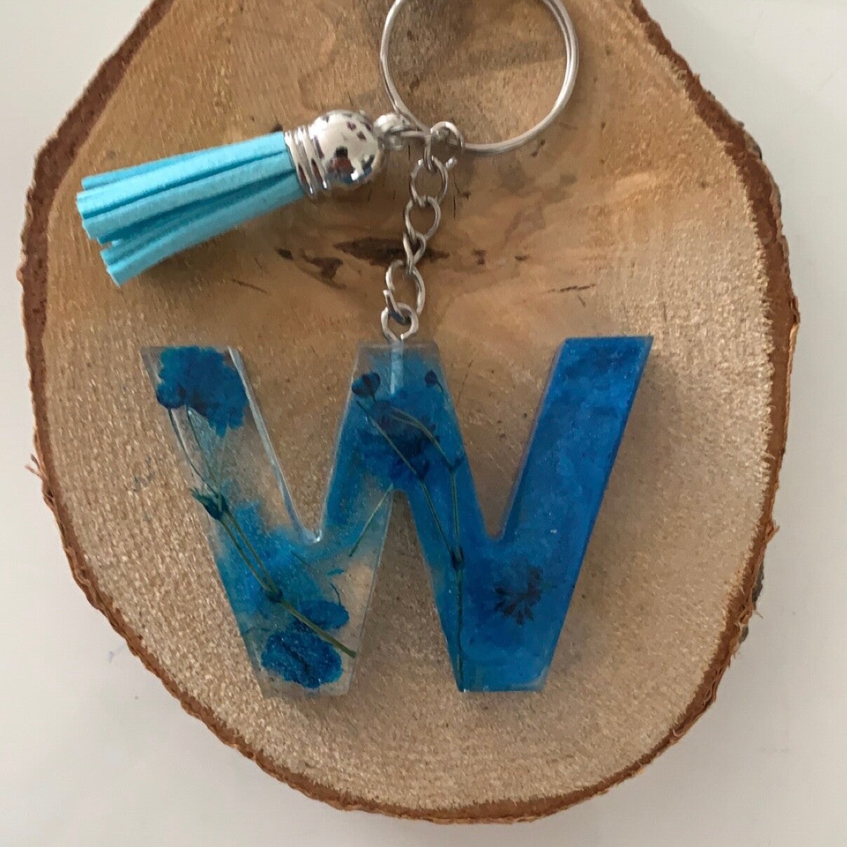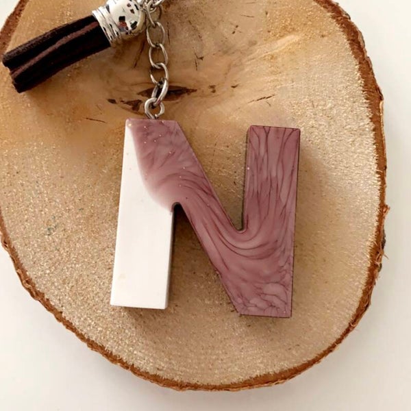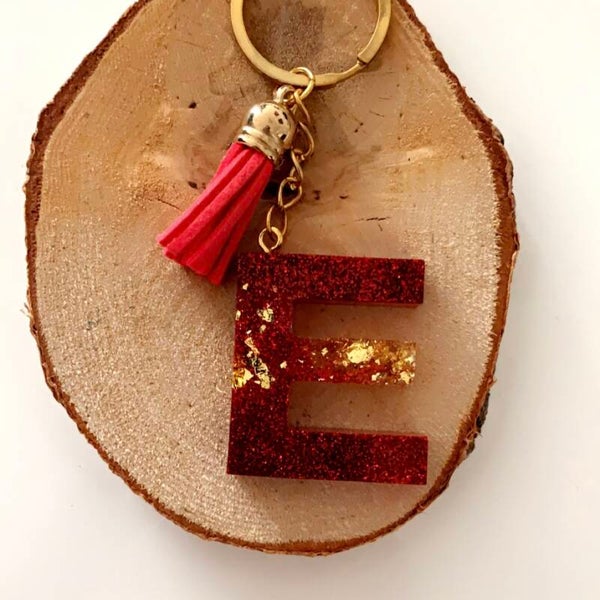 Handgemaakte letter sleutelhanger van epoxy hars, glitters, koffiebonen, goud vlokjes, enz..