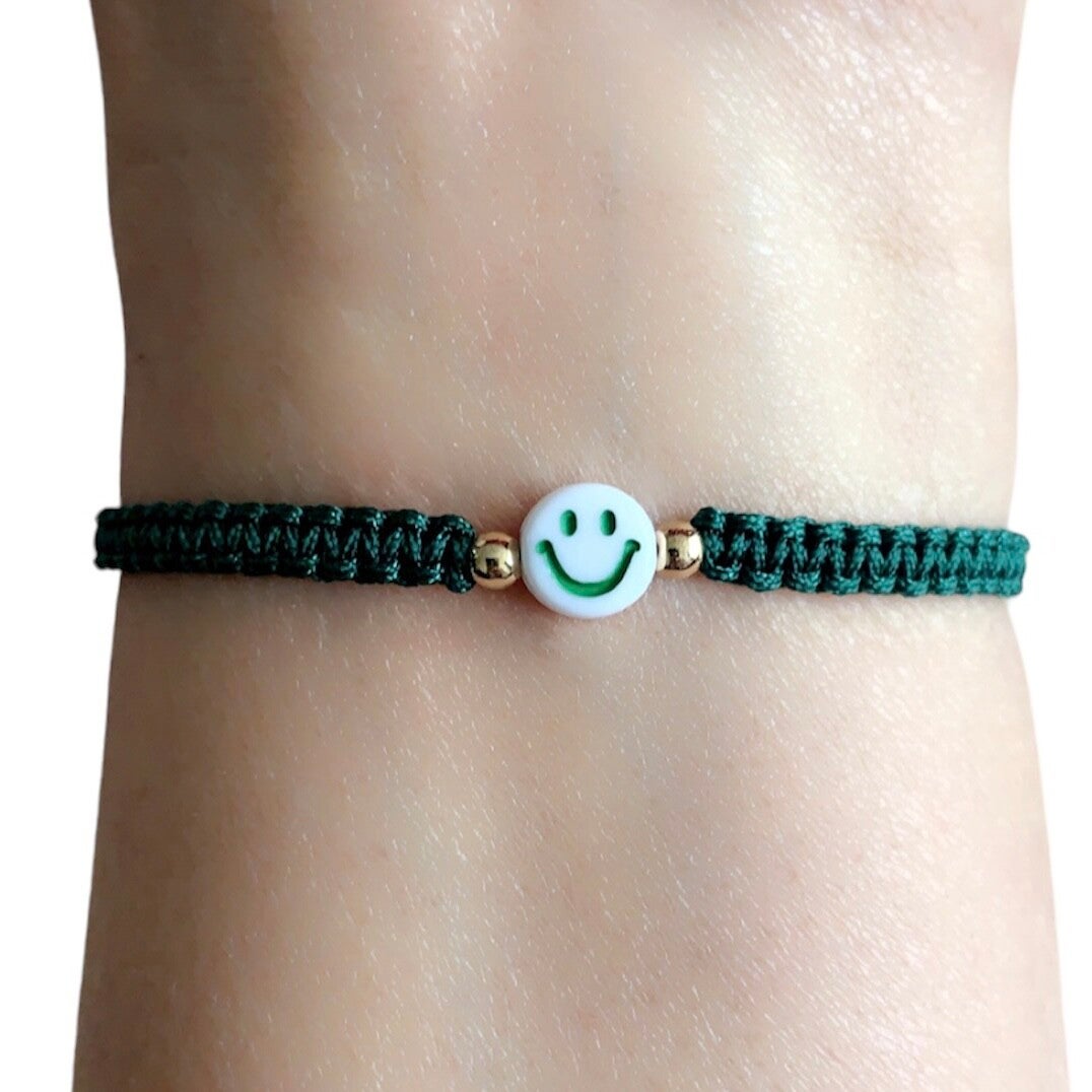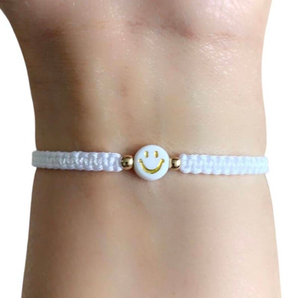 Gemaakt van macramé, Smiley kraal en gouden kraaltjes.
