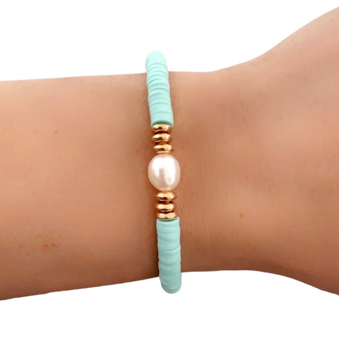 Handgemaakte unieke armband van 4mm katsuki kralen, 4mm dq kralen en zoetwater parel.