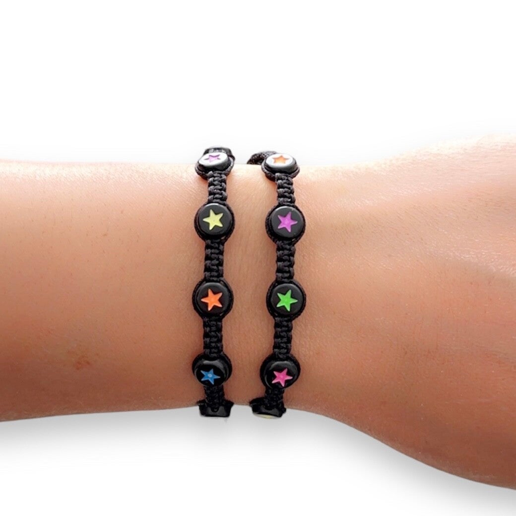 Handgemaakte vriendschap armband met muticolor ster kralen en nylon koord.
