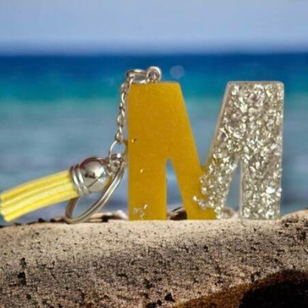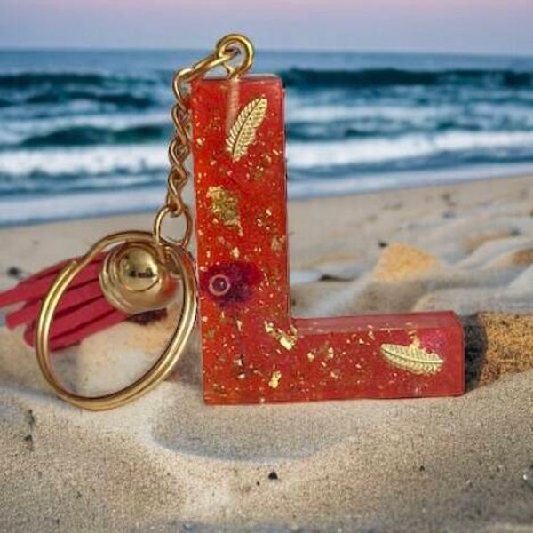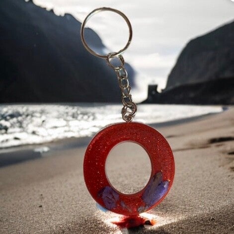 Handgemaakte Unieke sleutelhangers van epoxy hars, goud/zilver vlokken, glitters en gedroogde bloemen.
