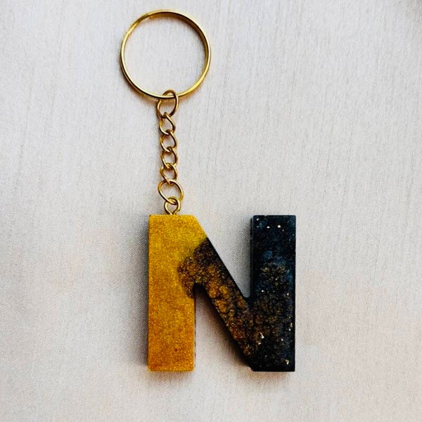 De sleutelhangers zijn gemaakt van epoxy giethars, glitters en rvs Sleutelring met ketting.