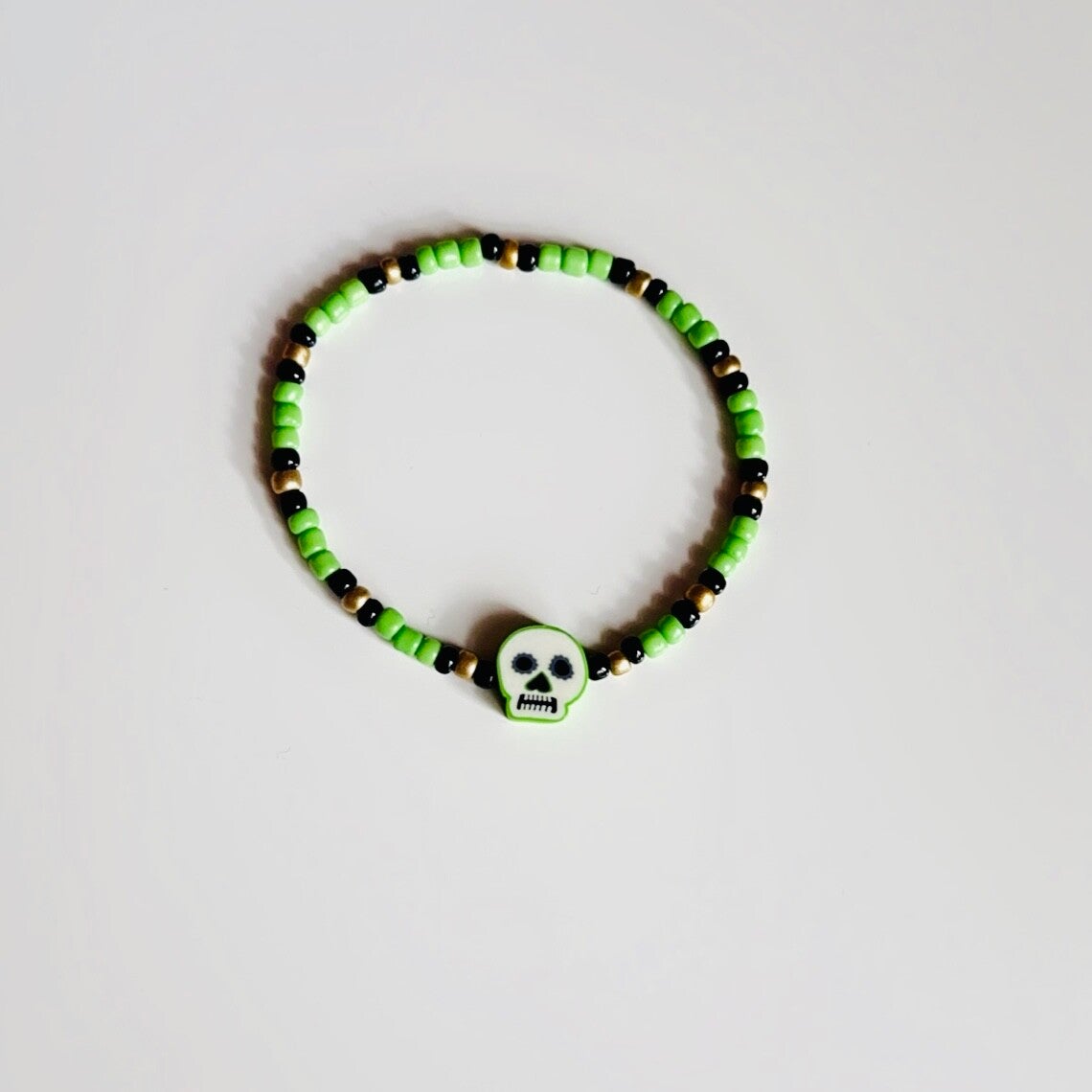 Deze Halloween stretch armbandjes zijn gemaakt van rocailles en polymeer.