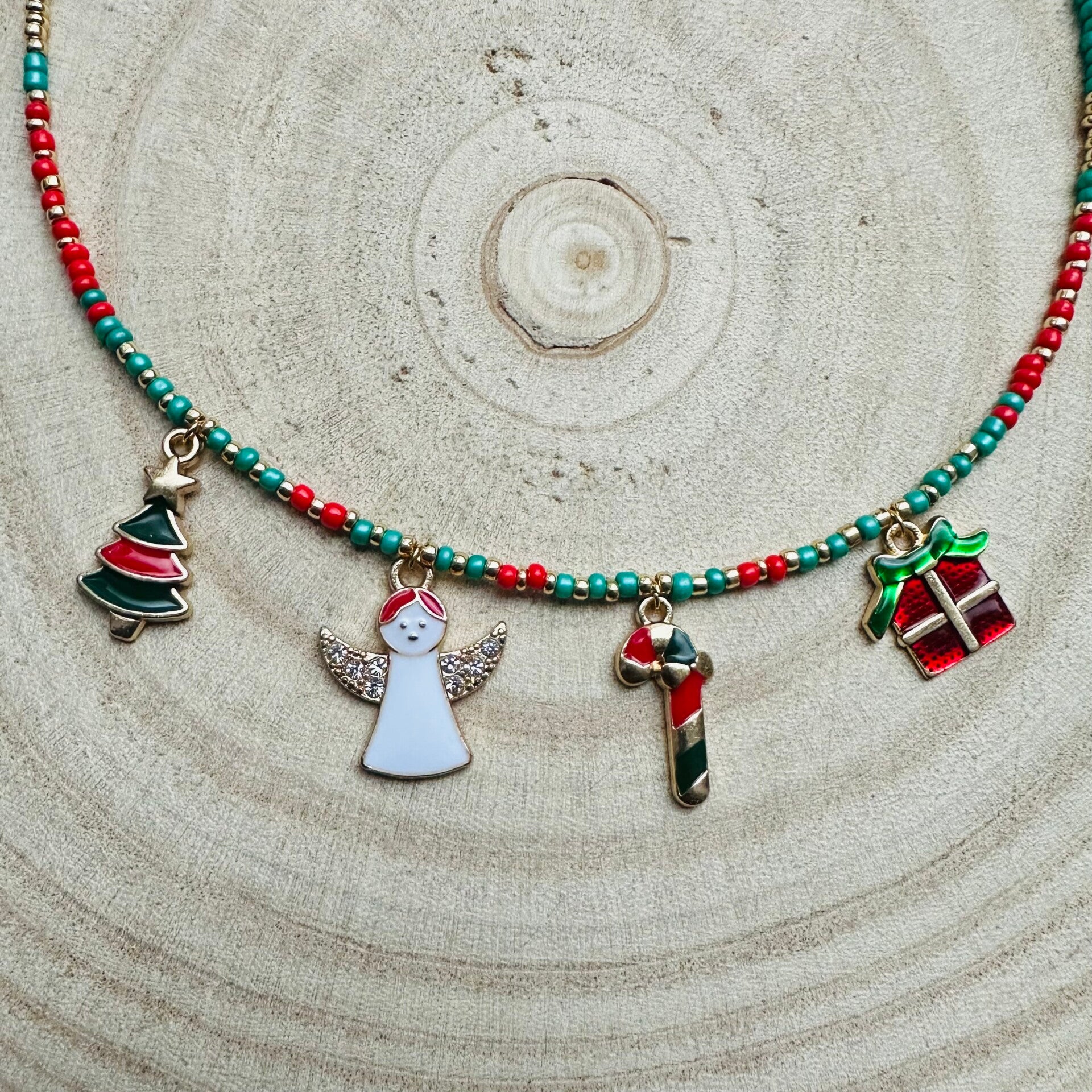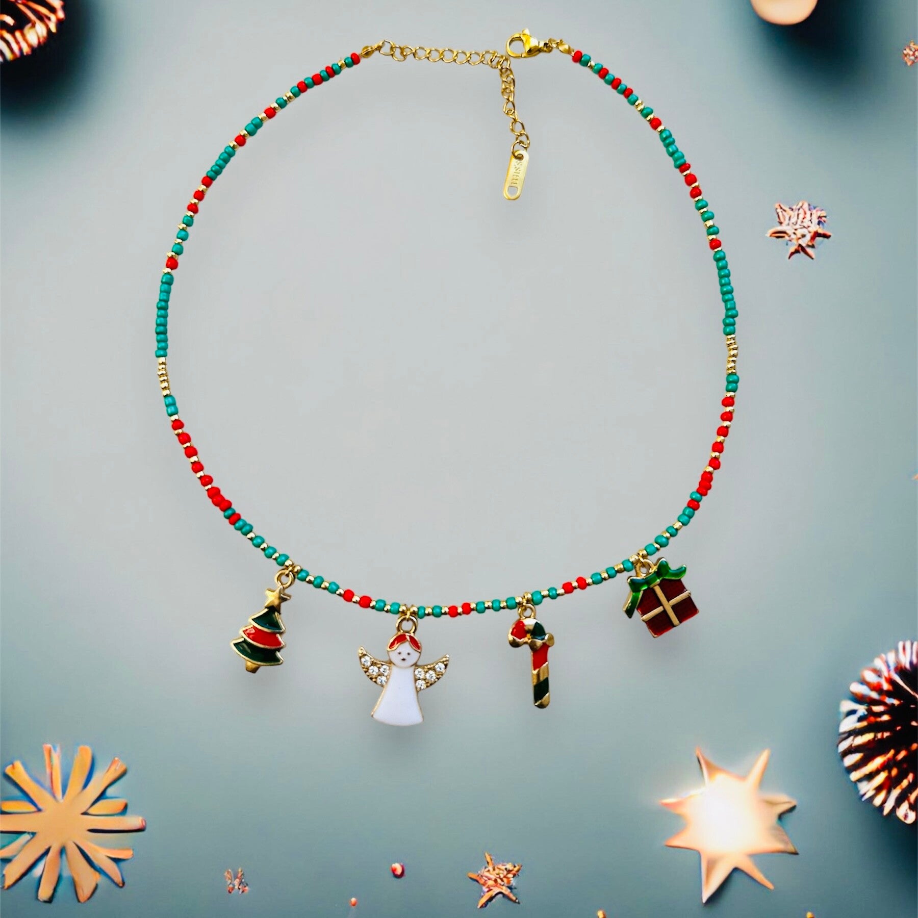 Deze mooie ketting met kerst bedels en kralen is speciaal ontworpen voor de kerst.