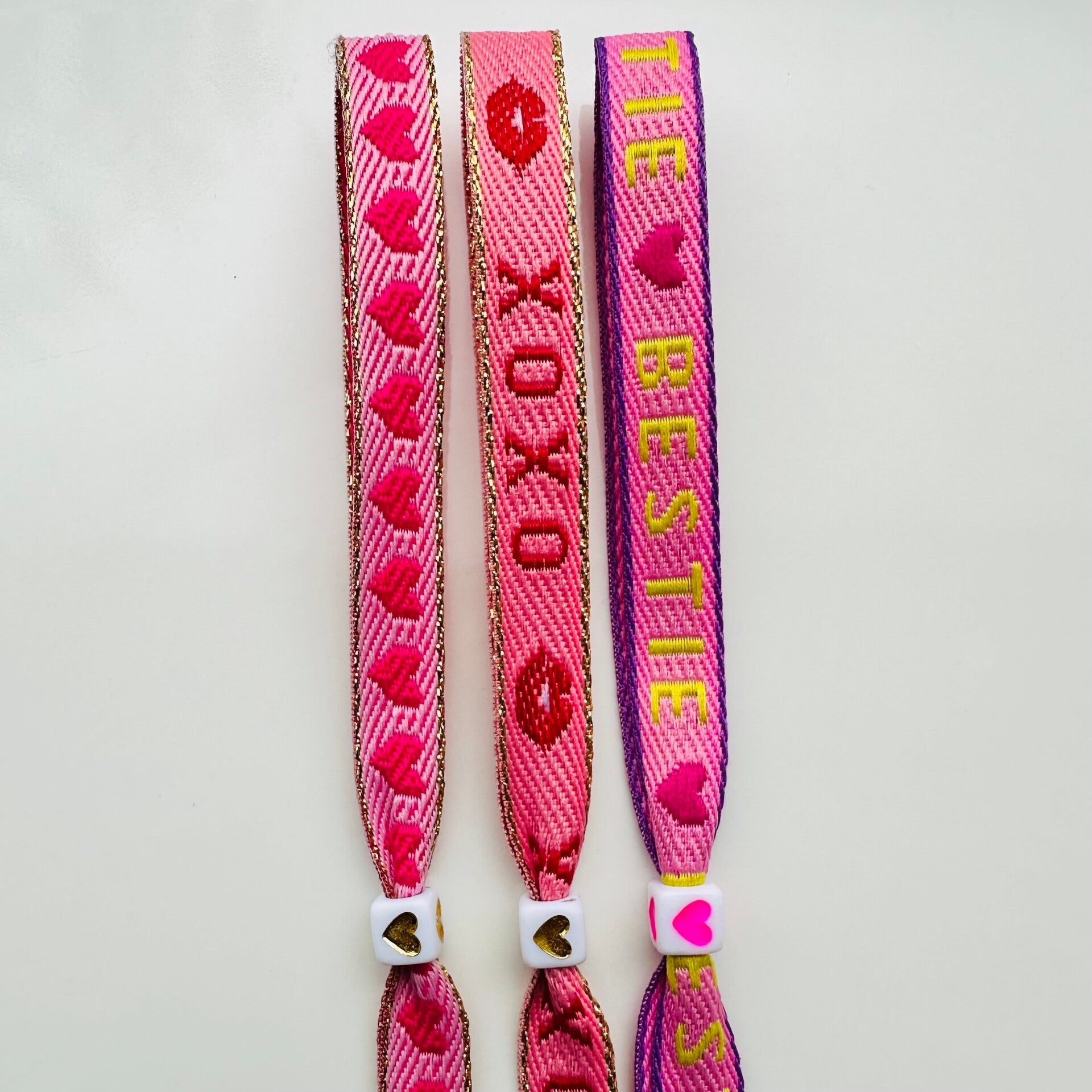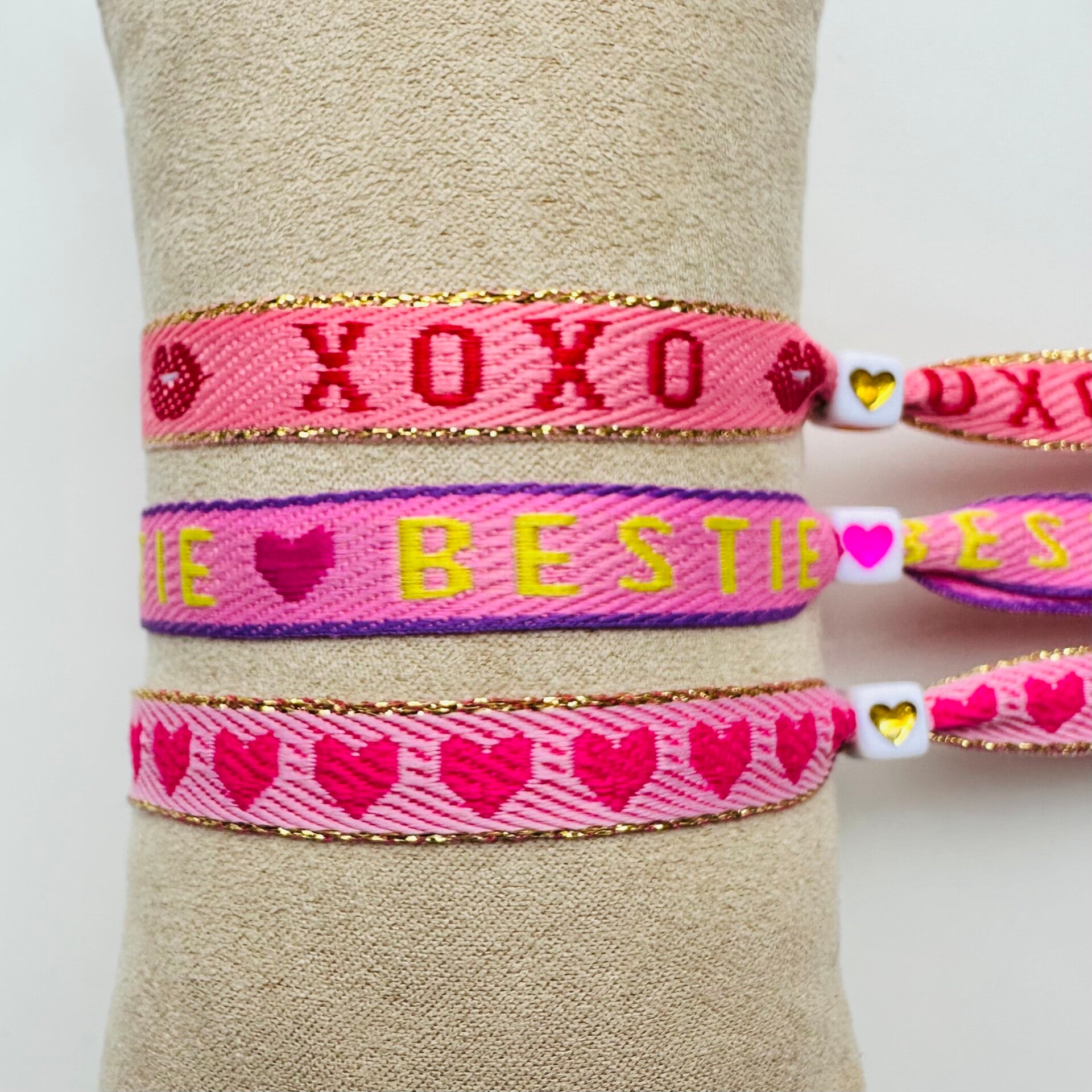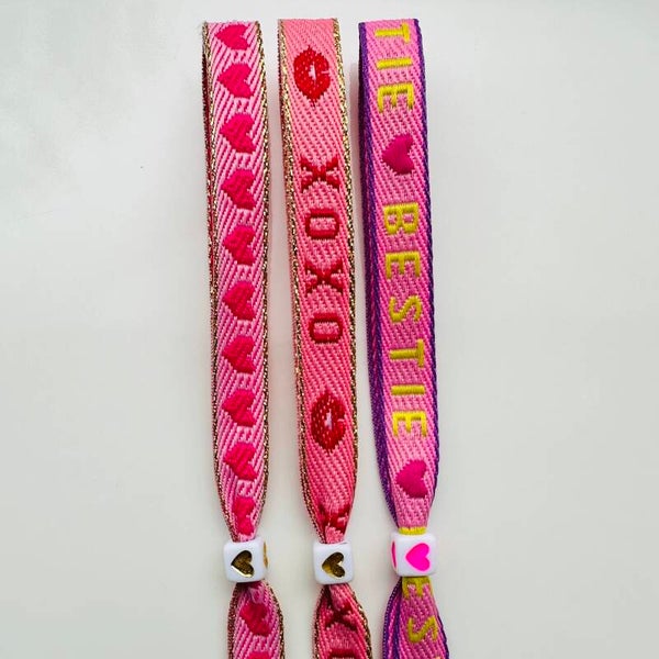 Leuke lintarmbandjes met hartje schuifkraal, zodat je het armband op je eigen maat kunt dicht maken.