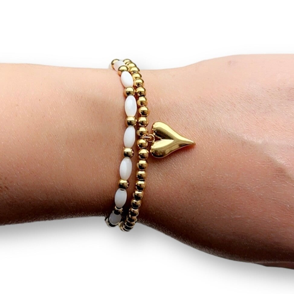 Handgemaakte gouden kralen armband met hartje bedel.