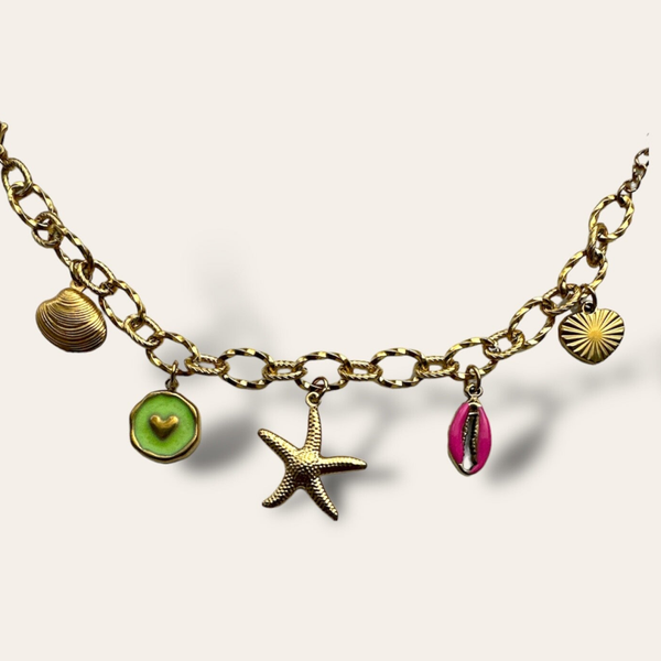 • Handgemaakte armband met bedels.