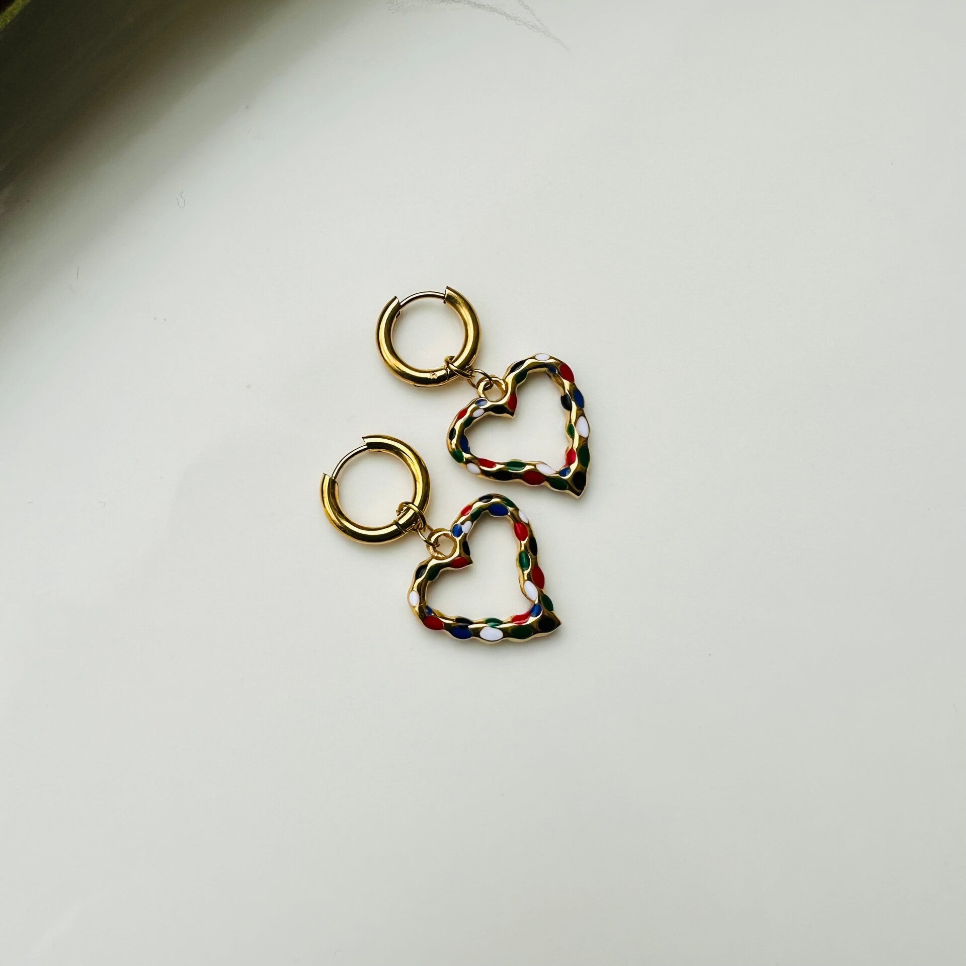 • Handgemaakte unieke oorbellen met multicolor hart