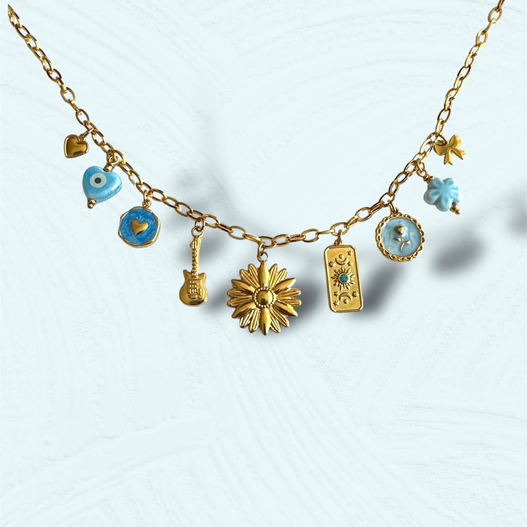 • Handgemaakte ketting met 9 schitterende bedels
