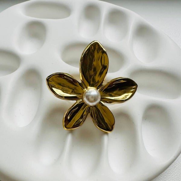 Hoe leuk is deze grote flower ring met parel in het midden?