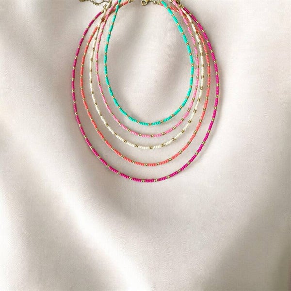Deze handgemaakte kralenketting geeft elke outfit een kleurrijke en zomerse uitstraling. Mooi om solo te dragen of te combineren met andere kettingen.