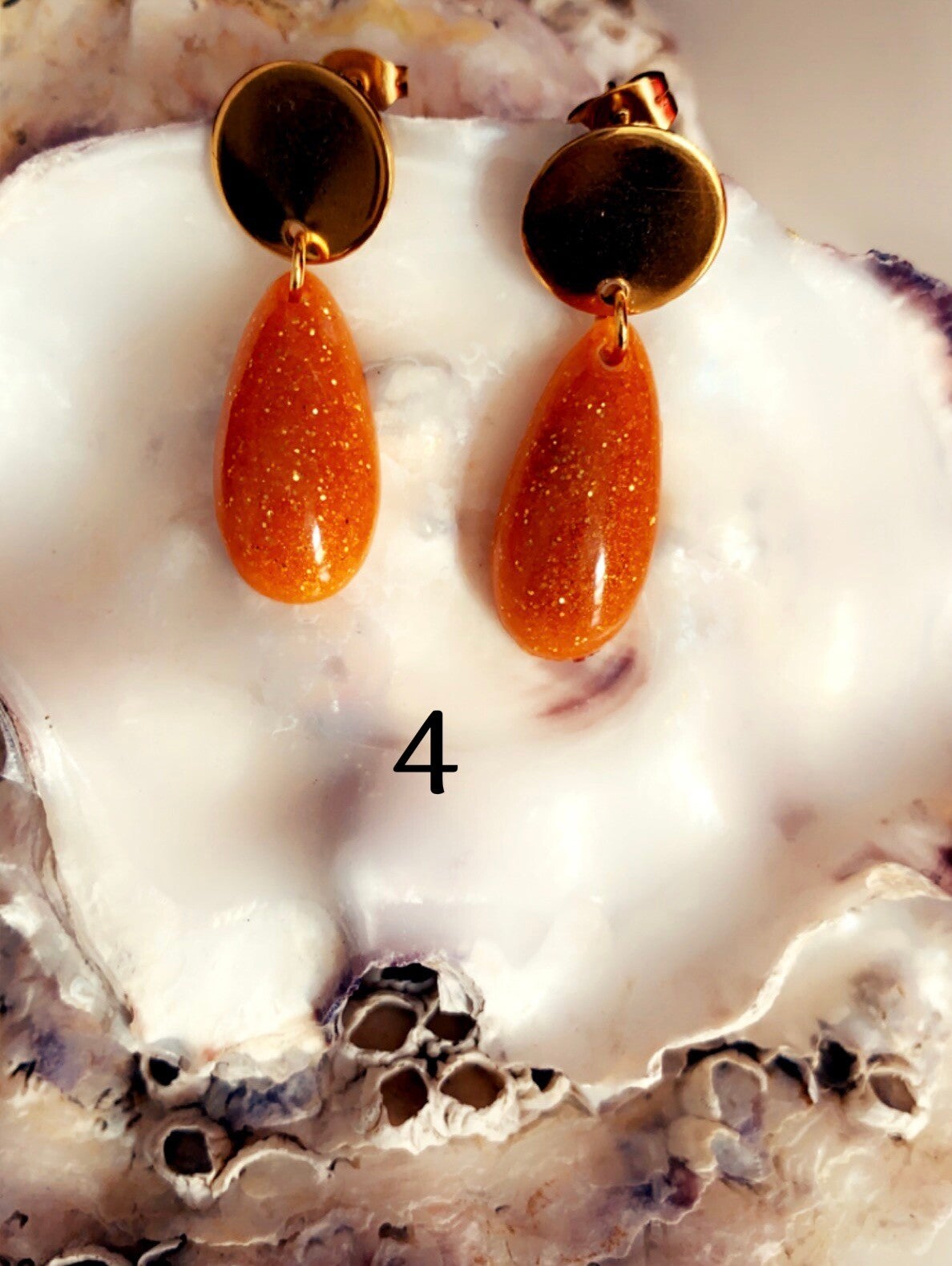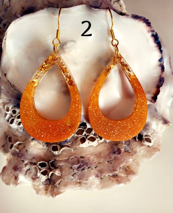 Handgemaakte epoxy oranje oorbellen met roestvrijstalen studs en 925 Sterling zilver oorhaakjes, allergie vrij dus!